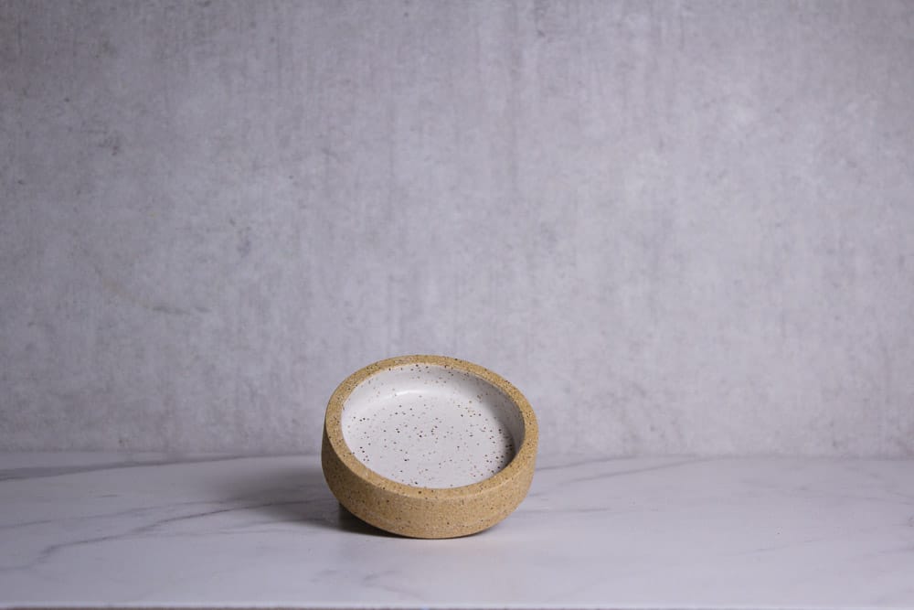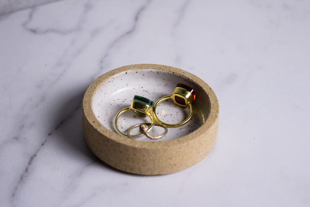 Sweet little speckled buff jewelry holder.